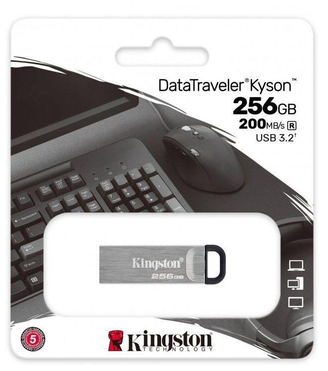 Флеш Диск Kingston 256Gb DataTraveler KYSON , (USB 3.2, 200 МБ/с при чтении, 60 МБ/с при записи)