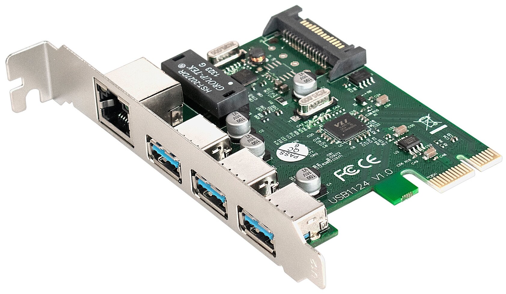 Контроллер сетевой ExeGate EXE-361 (PCI-E x1 v2.0, 3*USB3.0 ext. + LAN UTP 1000Mbps, разъем доп.питания, Chipset VL805 + RTL8153B) EX283714RUS