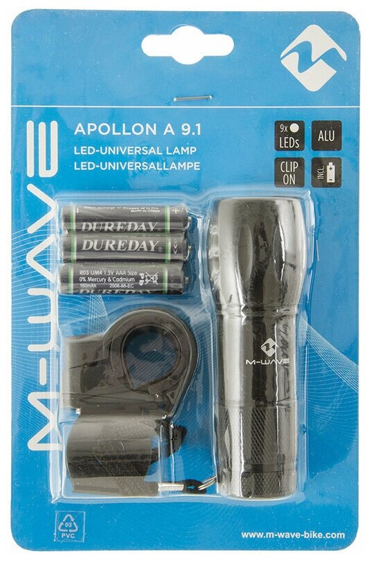 Купить Фара 5-220941 9диодов/1функция алюминиевая с батарейками, с ремешком, черная APOLLON A 9.1 M-WAVE