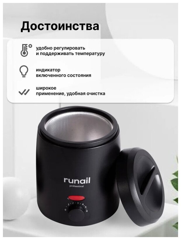 ruNail, Подогреватель для воска (цвет: черный), 200мл интересное: