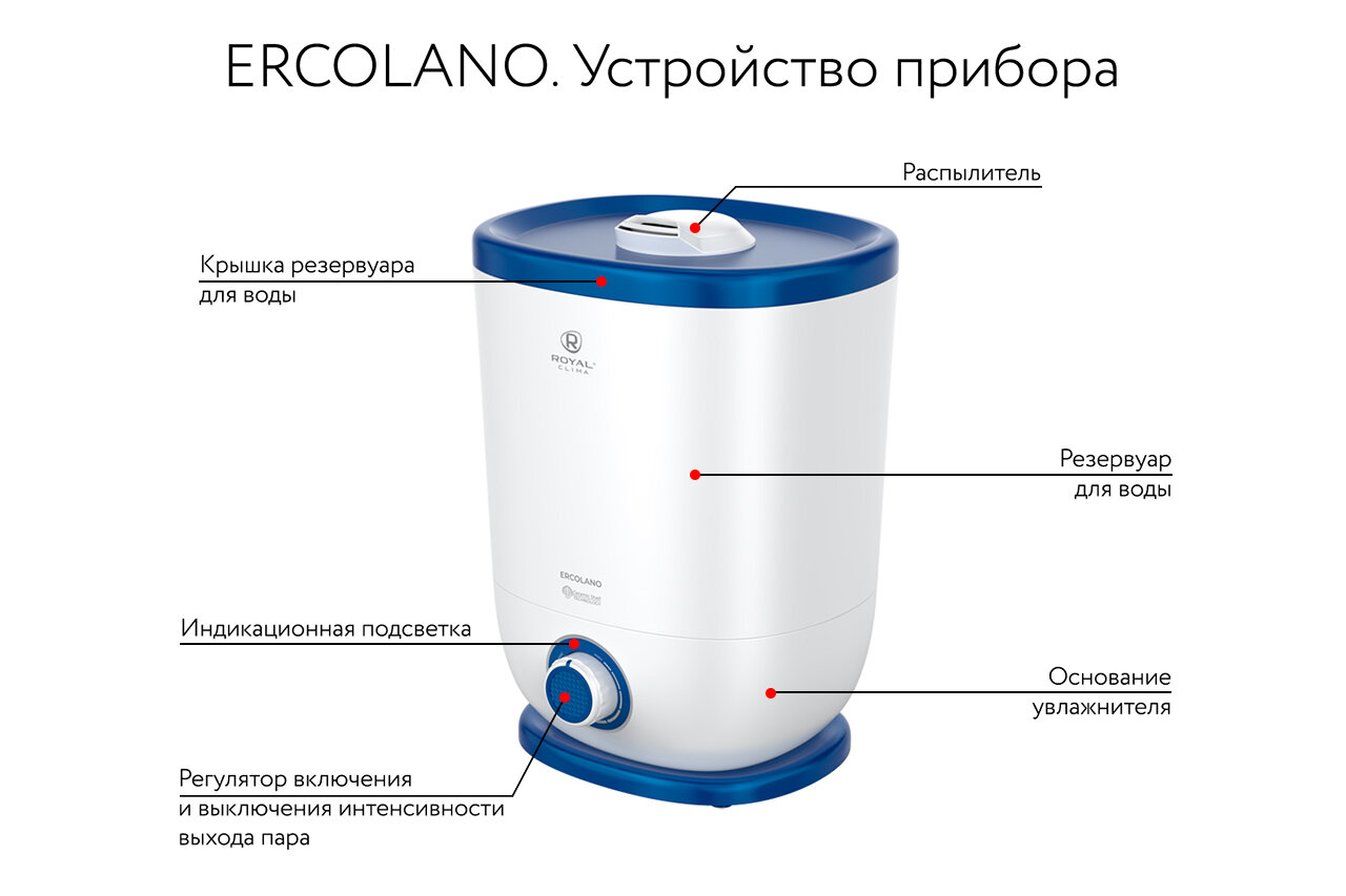 Увлажнитель воздуха Royal Clima Ercolano RUH-ER300/5.0M-BU белый / голубой