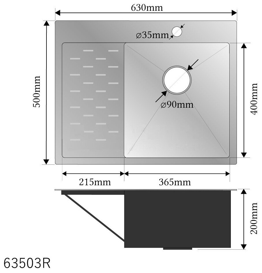 Купить Мойка врезная из нержавеющей стали FABIA PROFI-63503R чаша справа, размер 63Х50 СМ толщина 3,0 Х 0,8 ММ ,глубина 200 ММ, большой сифон С переливом И корзина В комплекте
