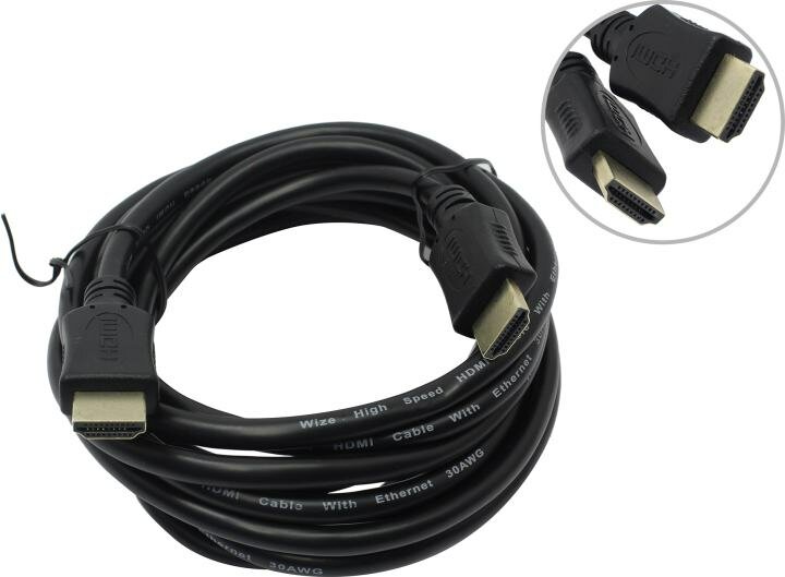 Кабель HDMI - HDMI, 5м, Wize (C-HM-HM-5M)