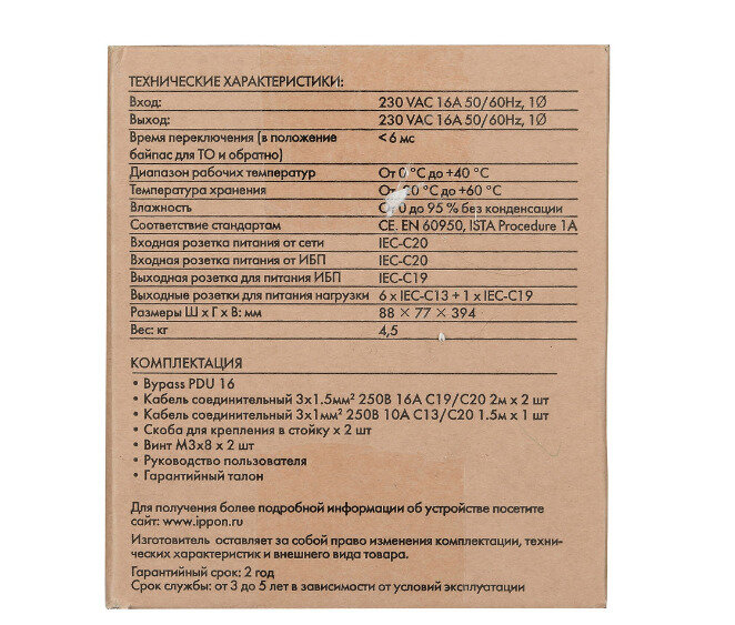 Байпас Ippon BP PDU16 (1000795) IEC 10A интересное: