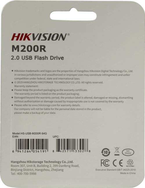Флешка HIKVision HS-USB-M200R(STD)/USB2.0/16G 16Gb (HS-USB-M200R(STD)/USB2.0/16G), USB2.0, пластиковый корпус