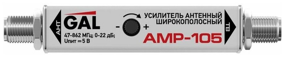 Усилитель ТВ сигнала GAL AMP-105, широкополосный, в разрыв антенного кабеля, активный