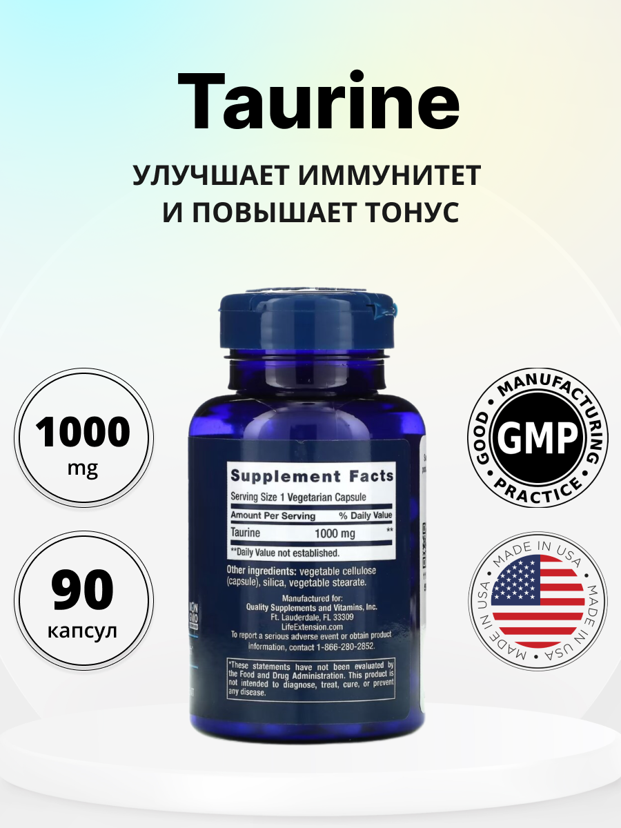 Life Extension Taurine (Таурин) 1000 мг 90 капсул интересное: