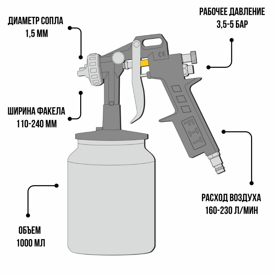 Краскопульт пневматический, нижний бачок, 1,5 мм интересное: