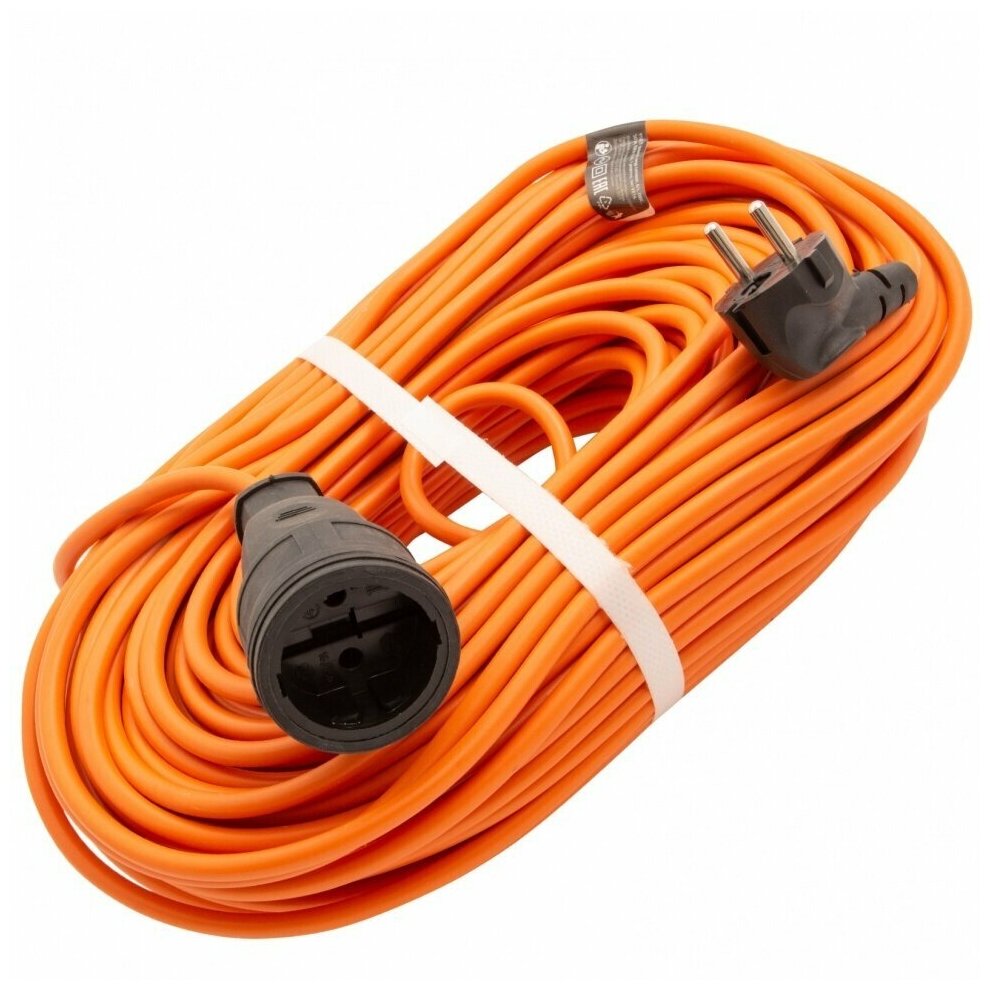 Удлинитель силовой СИБРТЕХ 95825, розеток 1шт, 2x1.5 кв.мм, 16A, 50м, ПВС, без катушки, оранжевый