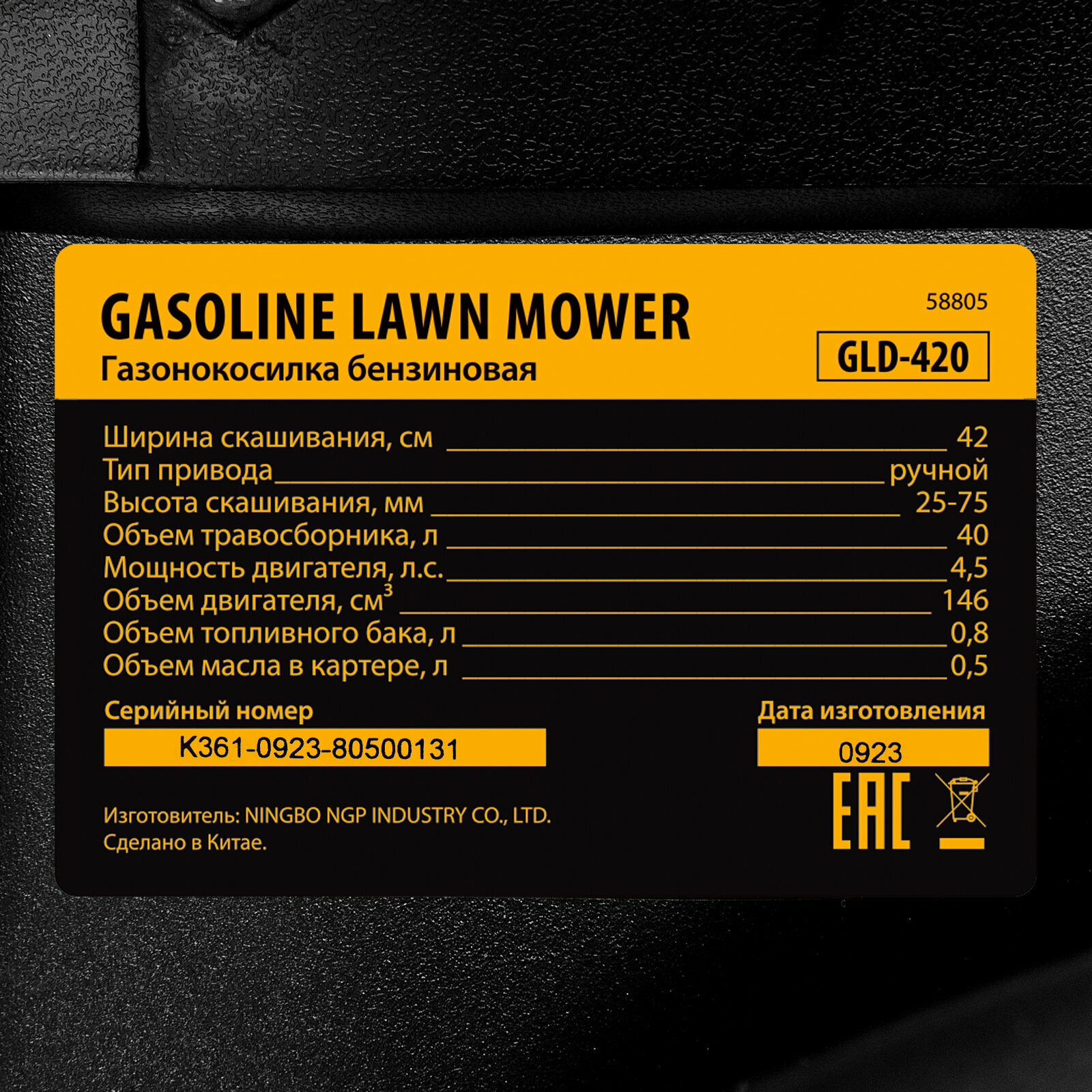 Газонокосилка бензиновая GLD-420, 146 см3, ширина 42 см, 40 л Denzel 58805