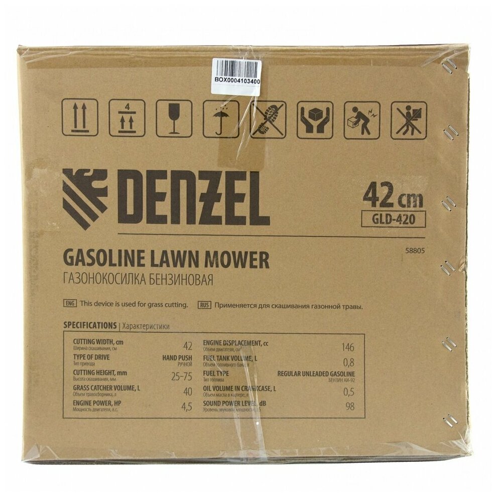 СохранитьГазонокосилка бензиновая GLD-420, 146 см3, ширина 42 см, 40 л Denzel Denzel интересное: