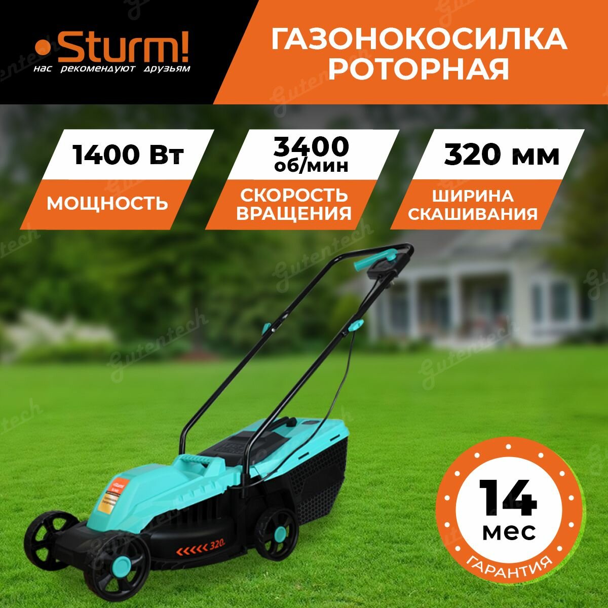 STURM Газонокосилка электрическая Sturm EL1432, 1400 Вт, ширина 32 см, высота кошения 30-70 мм