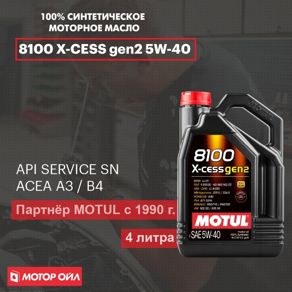 Купить MOTUL Масло Моторное 5W40 Motul 4Л Синтетика 8100 X-Cess Gen2 A3/B4 Bmw Ll-01