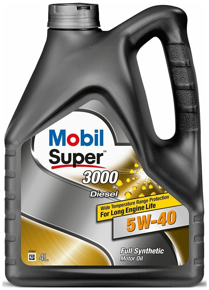 Синтетическое моторное масло MOBIL Super 3000 X1 Diesel 5W-40, 4 л, 3.8 кг, 1 шт