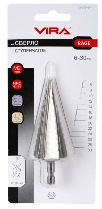 VIRA RAGE Сверло ступенчатое с шестигранным хвостовиком 6-30 мм 554011 интересное: