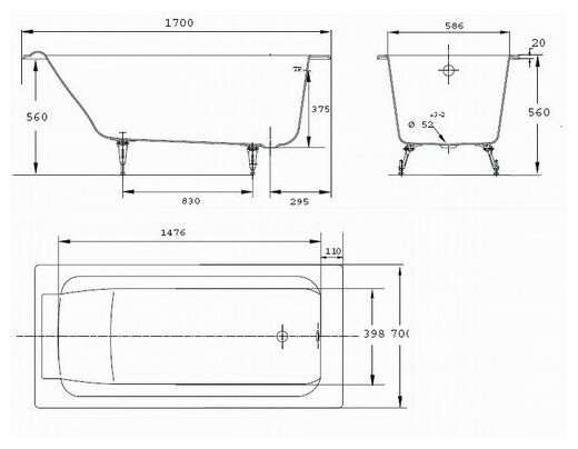 Чугунная ванна Jacob Delafon Parallel 1700х700 E2947-S-00
