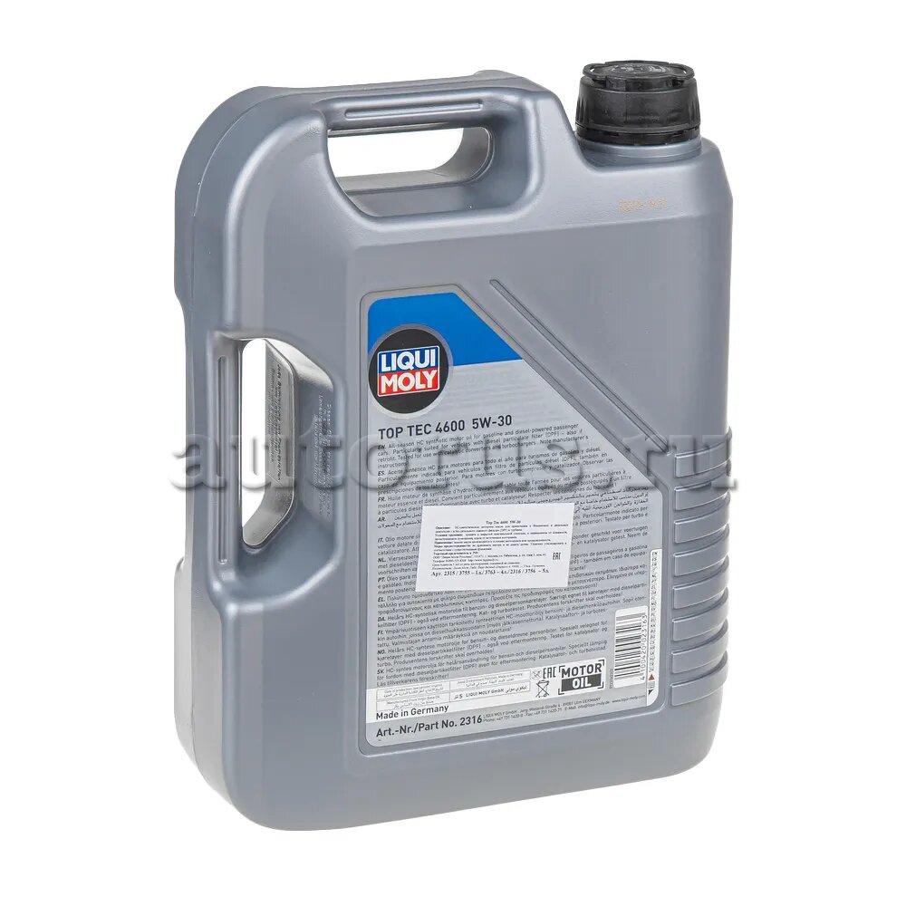 LIQUI MOLY 2316 Масло моторное LIQUI MOLY Top Tec 4600 5W-30 синтетическое 5 л 2316/8033/3756
