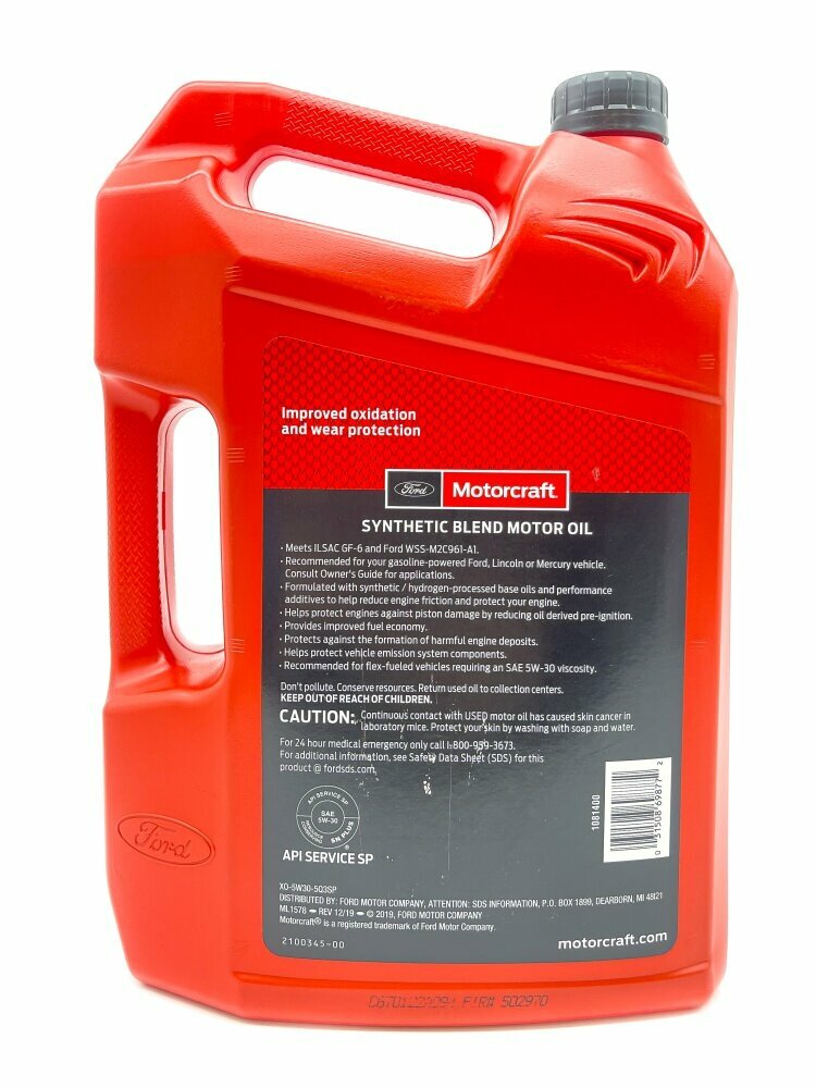 Полусинтетическое моторное масло Motorcraft SAE 5W30 Synthetic Blend, 4.73 л, 4.5 кг