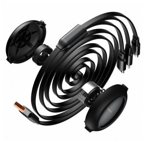 Кабель Baseus Bright Mirror One-for-three Retractable Data Cable USB to M+L+C 3.5A 1.2m Black (CAMLT-MJ01)