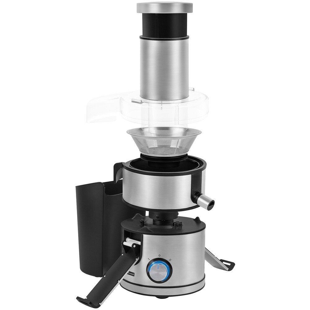 | Отзыв: | Сборка на высшем уровне. Отличное отверстие для загрузки – круглый желоб, значительно облегчает подготовку фруктов и овощей к работе. Отжим хороший, в жмых сок не попадает. |