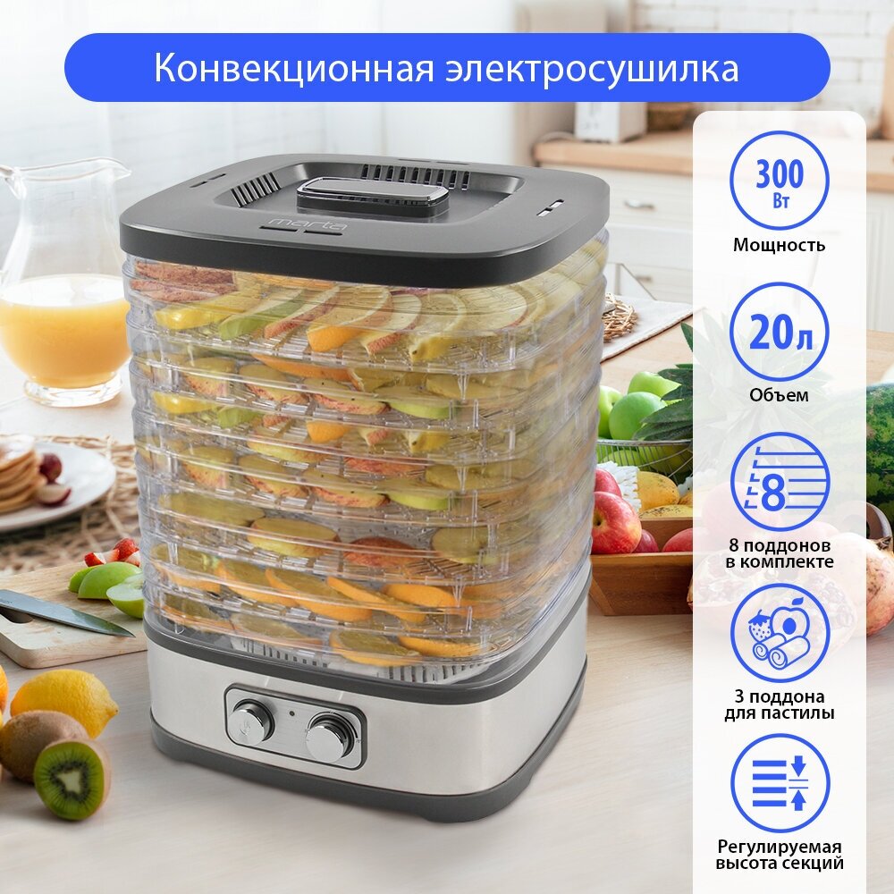 MARTA MT-1873 11 поддонов {8+3} серый гранит сушилка д/фруктов,овощей интересное: