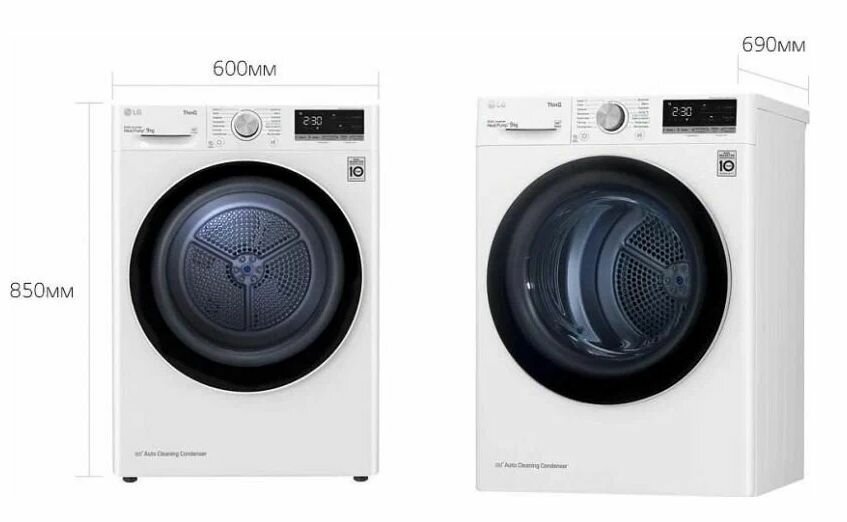 Сушильная машина LG Electronics/ Стандартная сушильная машина c тепловым насосом и автоочисткой конденсатора, 9кг, A++, 850х600х690 мм, инвертерный ко