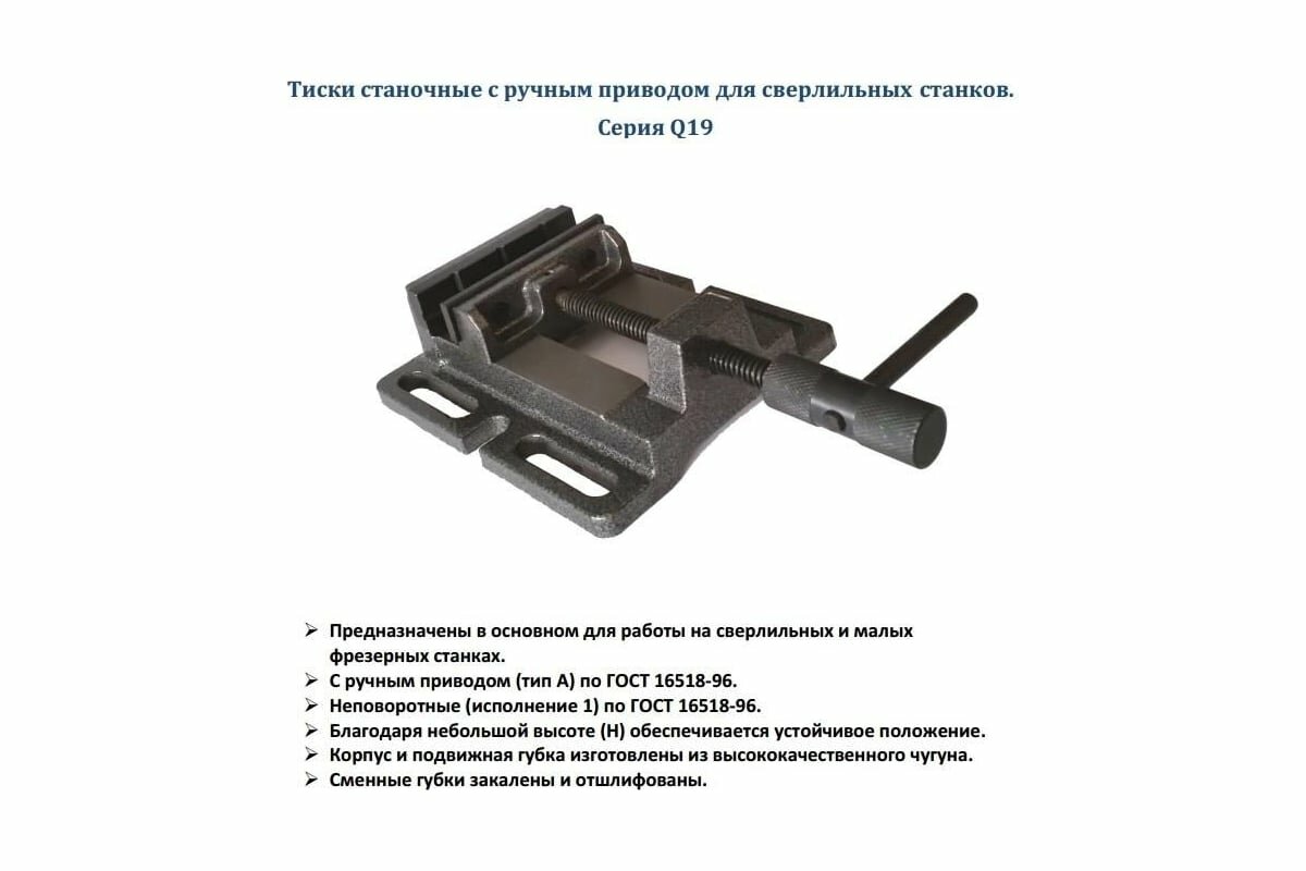 Тиски станочные для сверлильных станков 100мм, длина хода 75мм, вес 3.4кг, серия Q19, GRIFF, арт. b241402 интересное: