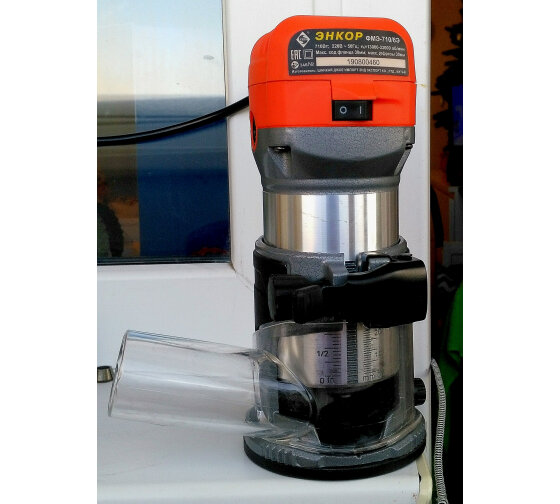 | Минусы: | копировальные втулки в комплекте на выброс, качество швов пластика на 4 балла. цанга на 8 просто разрезной конус как у Макита взаимозаменяемы, конус не дает точности установки фрез и все фрезы длиннее 25мм. имеют биение если при затяжки цанги не проворачивать фрезу. короткий кабель питания.1,5 метра. кабель жёсткий для такого инструмента. |