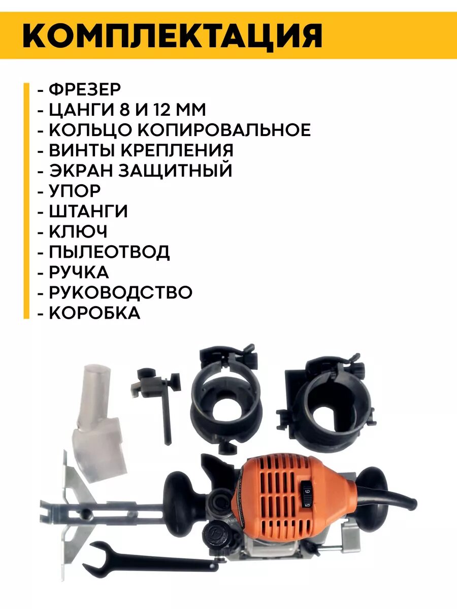 куча разных насадок которые позволяют его использовать как многофункциональный фрезер(обычный и кромочный) |