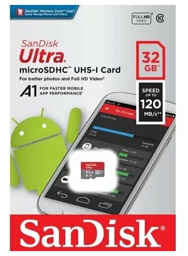 Карта памяти microSDHC SanDisk SDSQUA4-032G-GN6MN 32 Гб класс 10 Ultra UHS-I A1 120 Мб/с