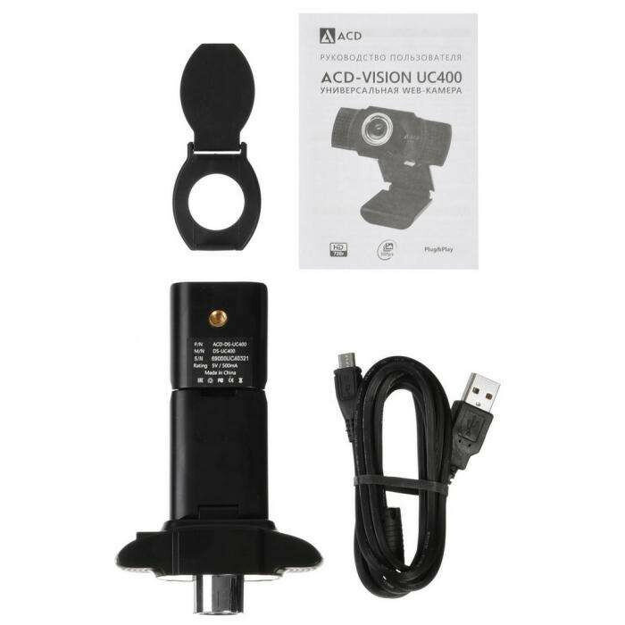 WEB Камера ACD-Vision UC400 CMOS 1.3МПикс, 1280x720p, 30к/с, микрофон встр., USB 2.0, шторка объектива, универс. крепление, черный корп. интересное: