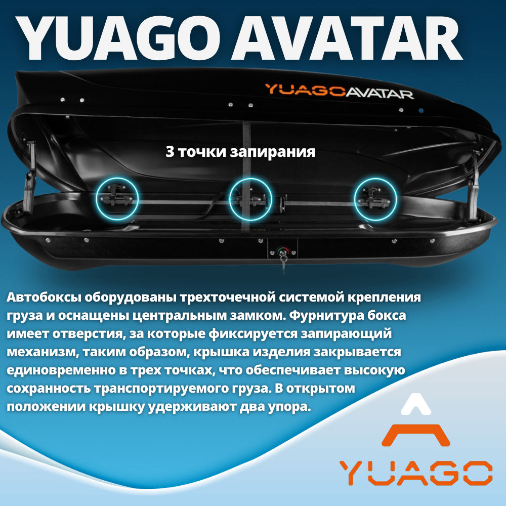 Автобокс yuago avatar euro DUO черный 186х86х46см 460л интересное: