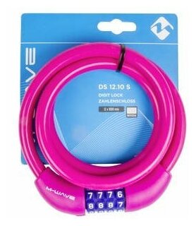 Велосипедный замок M-WAVE, тросовый, кодовый, 12х1000мм, силикон, розовый, 5-231068