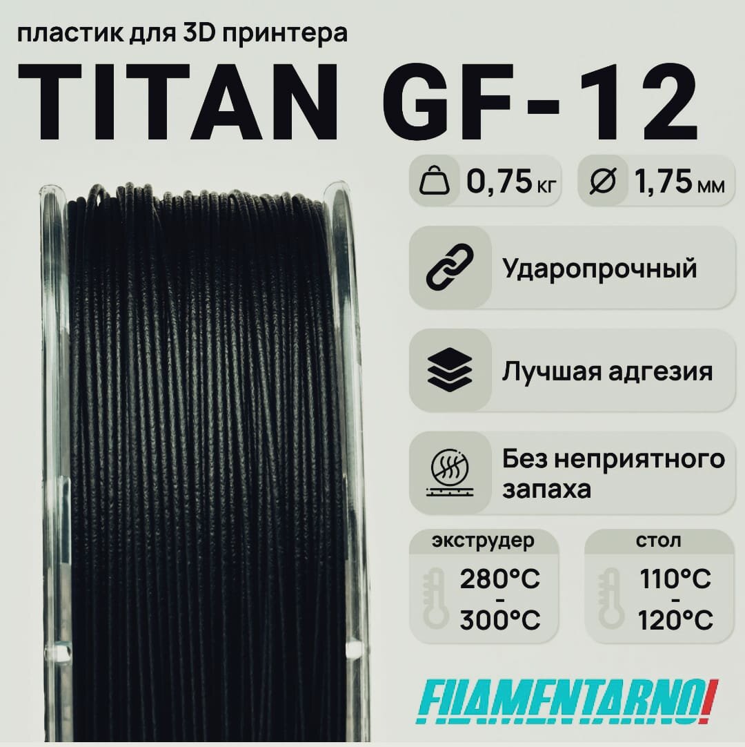 Пластик для 3D принтера Filamentarno 1.75 мм. PRO TITAN GF-12 черный (0.75 кг) интересное: