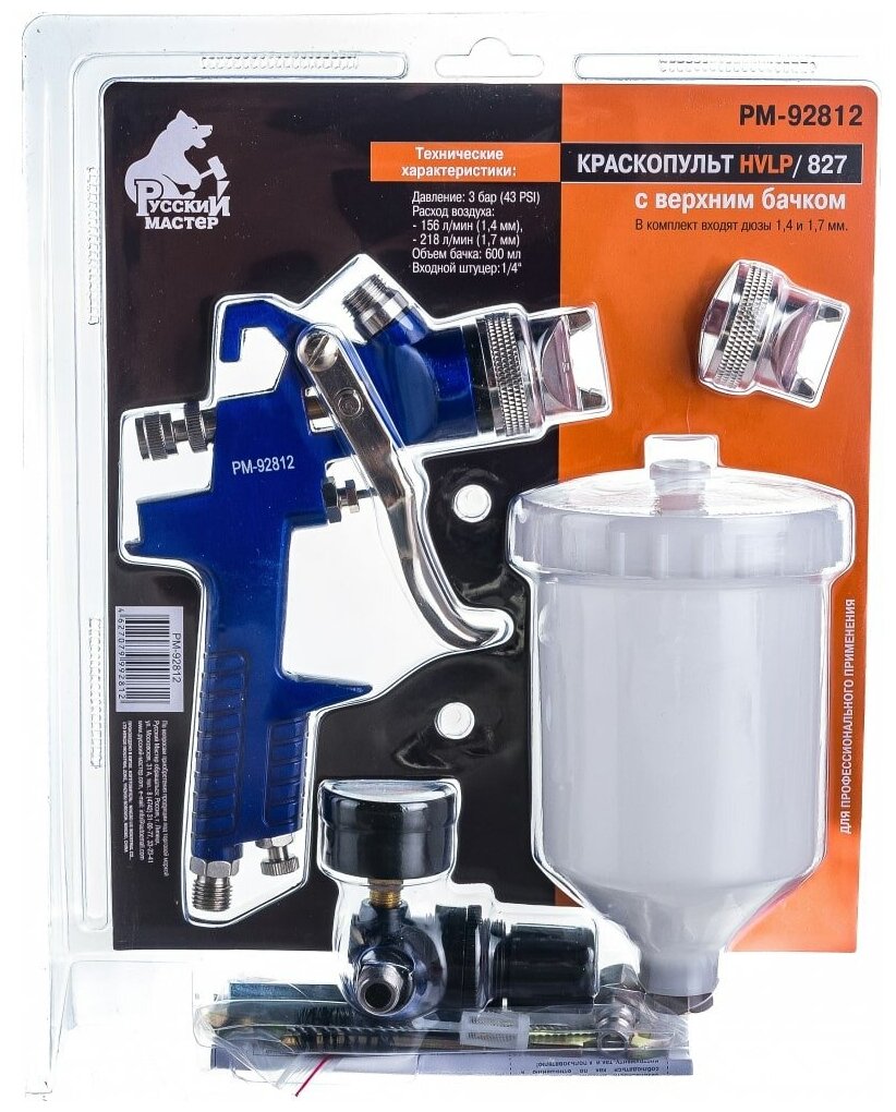 Купить Русский Мастер Краскопульт 827 д=1,4/1,7 верхний бачок в Блистере РМ-92812 .