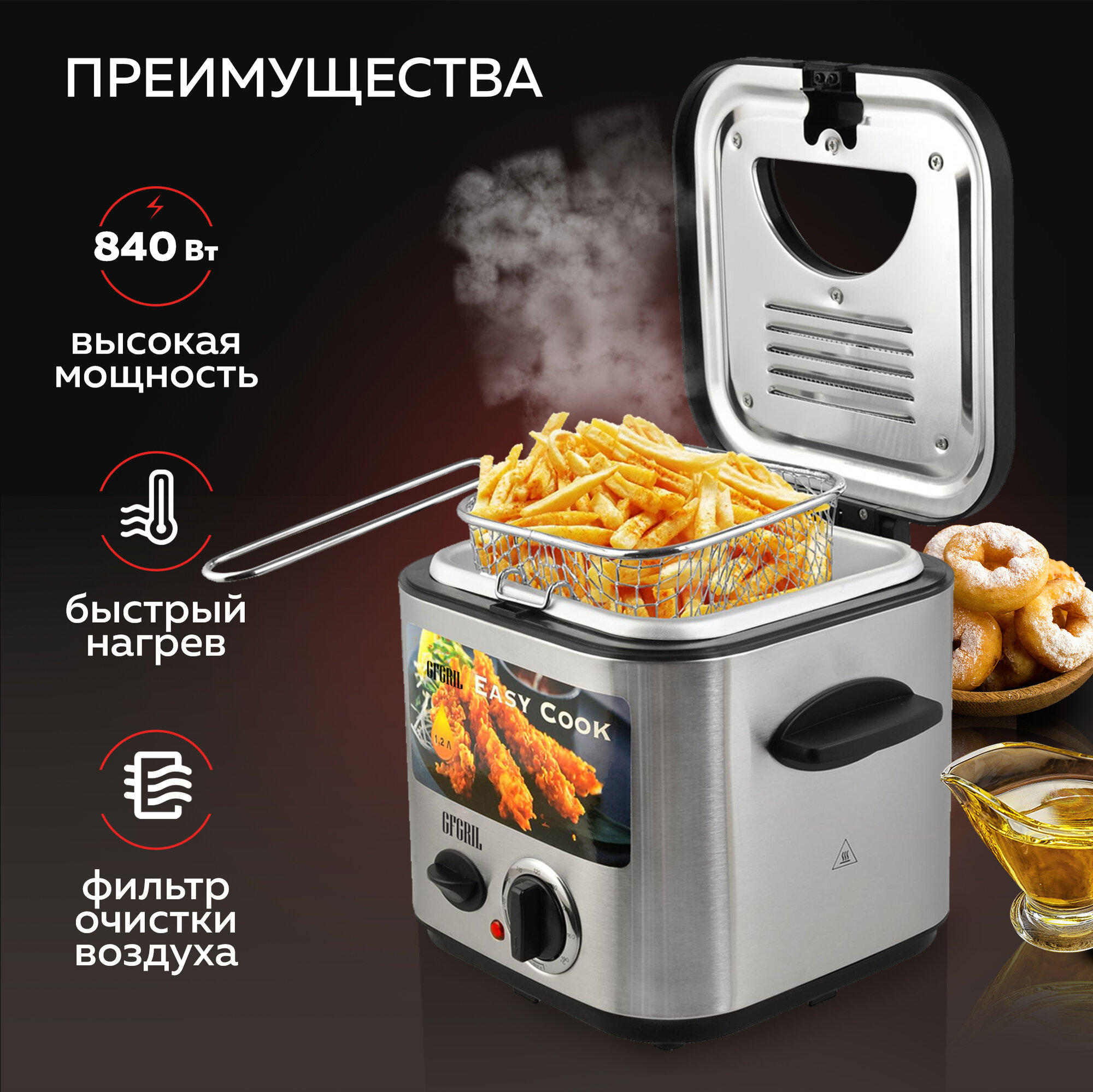 Купить GFGRIL электрическая фритюрница GFF-025 Easy Cook, быстрый нагрев до 190, фритюрница объемом 1.2 л., высокая мощность, фритюрница со съемной корзиной