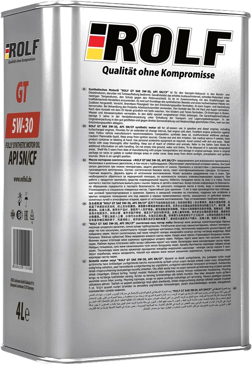 ROLF Sae 5W-30 4L Gt , Api Sn/Cf Масло Моторное Синтетическое Пластик