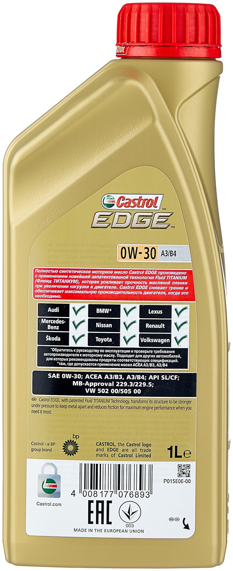 CASTROL 15334B EDGE 0W-30 TITANIUM EDGE 0W-30 A3B4 синтетическо