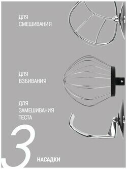 | Плюсы: | в комплекте крючки для замешивания теста, венчик для взбивания, насадка для приготовления пюре. |