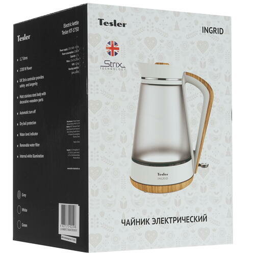 Чайник электрический TESLER KT-1750, 2200Вт, белый