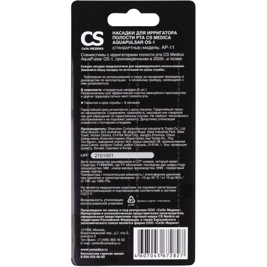 Купить Насадки CS MEDICA AP-11 для ирригатора полости рта AquaPulsar OS-1, стандартные, 2 шт