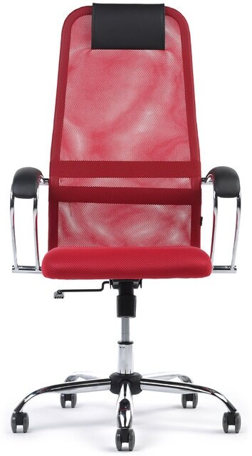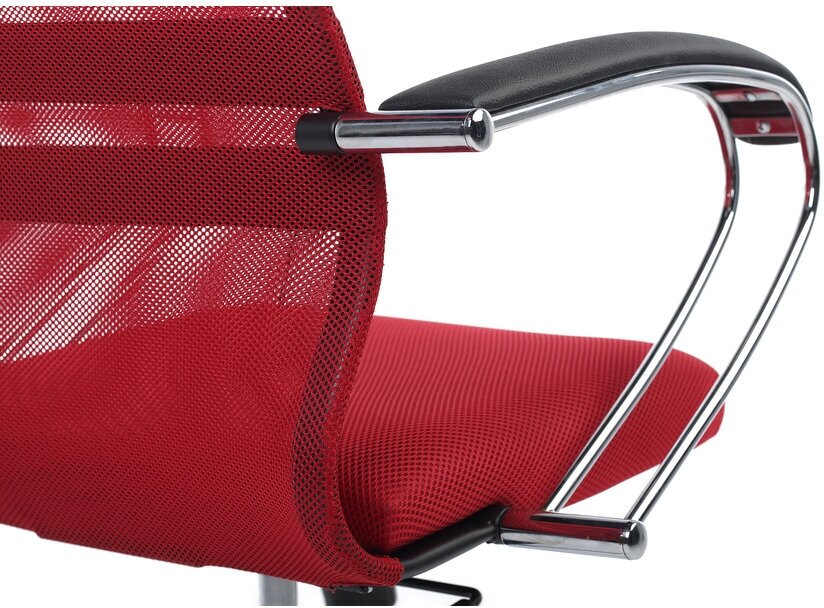 Кресло руководителя компьютерное рабочее офисное / для дома Метта Su-b-8 хром, ткань-сетка, сиденье мягкое, красное