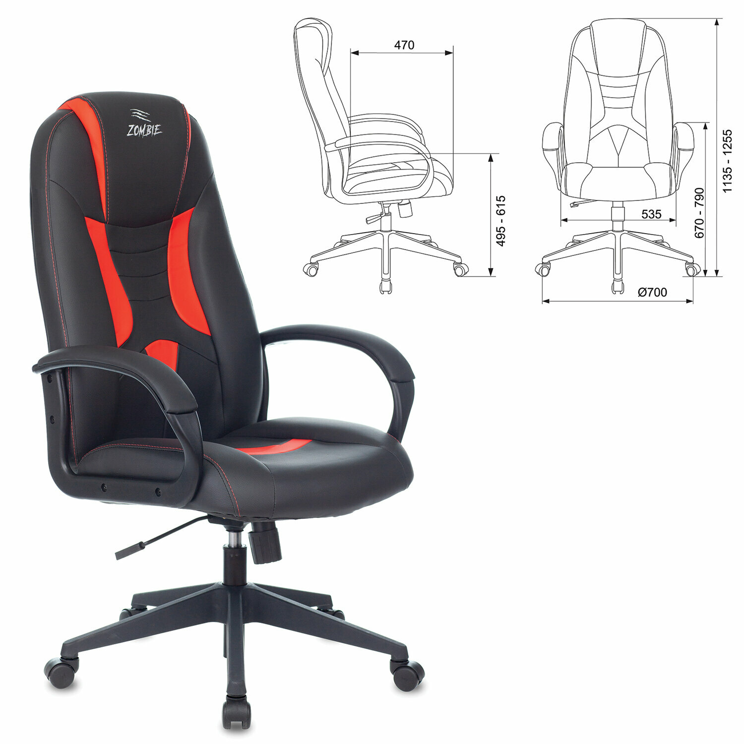 Кресло компьютерное ZOMBIE 8, экокожа, черное/красное