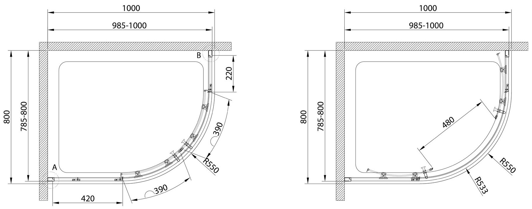 ECO-O-RH-2-100/80-C-Cr Душевой уголок