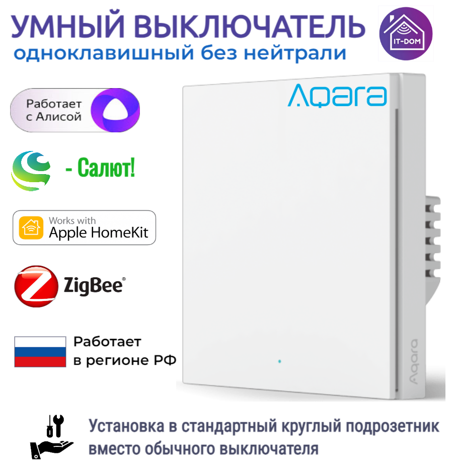 Умный выключатель Aqara H1 EU(без нейтрали, 1 клавиша)