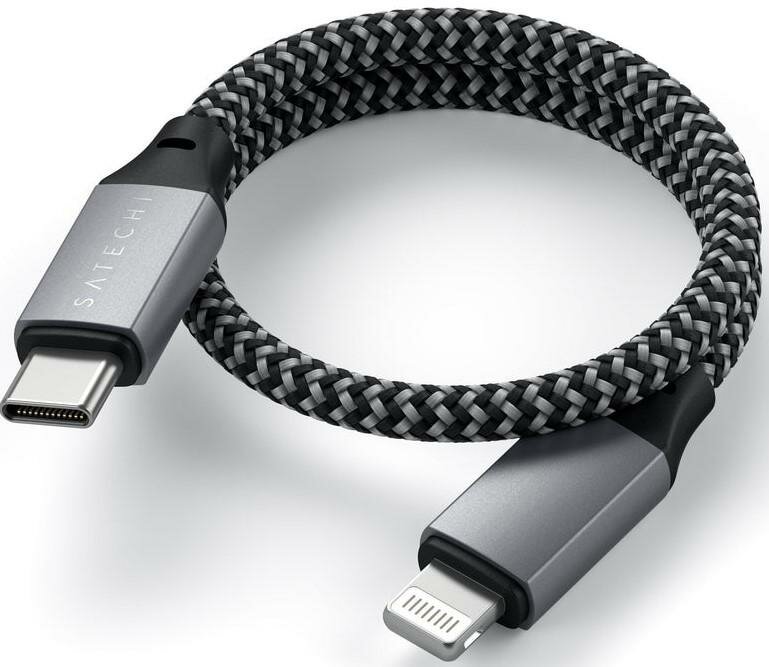Кабель Satechi USB-C to Lightning MFI Cable. Длина кабеля: 25 см. Цвет: серый космос.