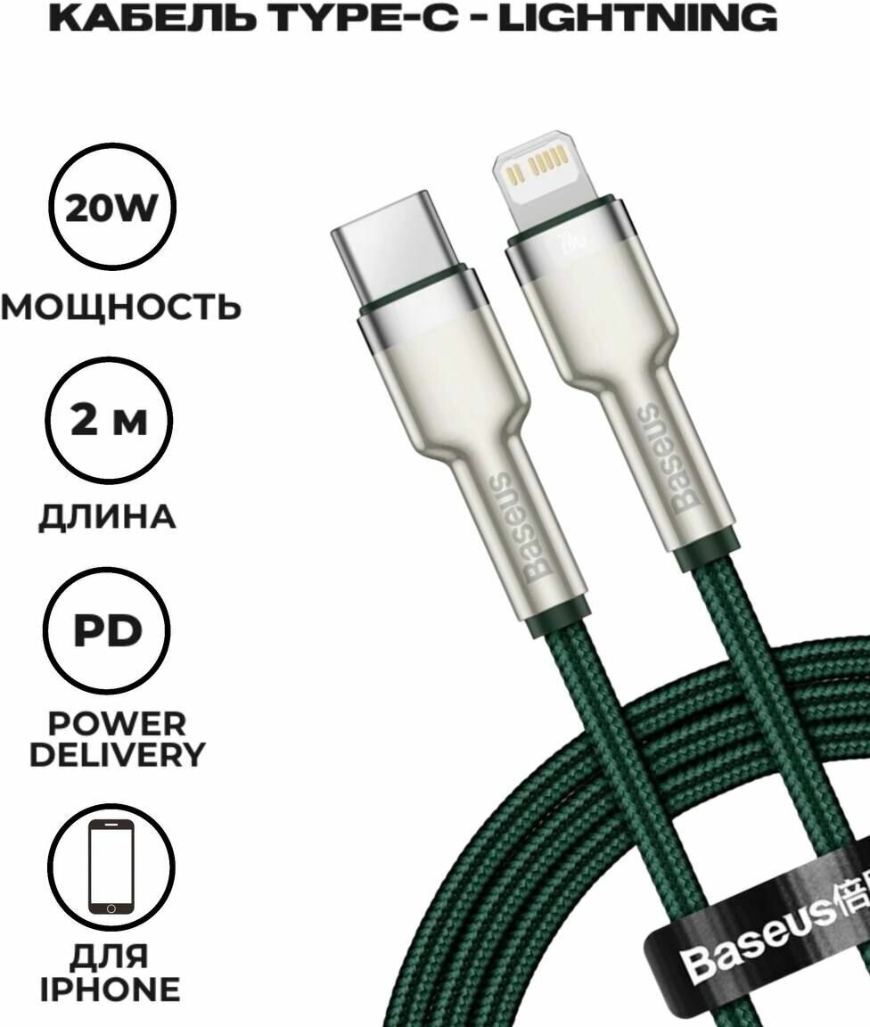Кабель USB Type-C - Lightning 2м Baseus Cafule Series Metal Data PD 20W - Зеленый (CATLJK-B06)