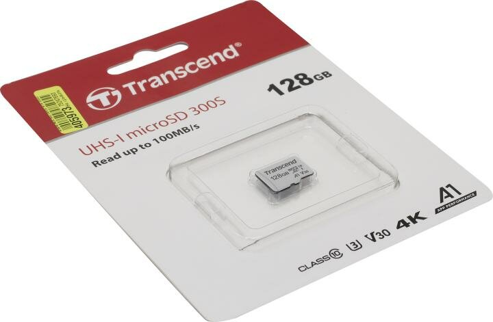 Карта памяти microSDXC UHS-I U3 Transcend 128 ГБ, 100 МБ/с, TS128GUSD300S
