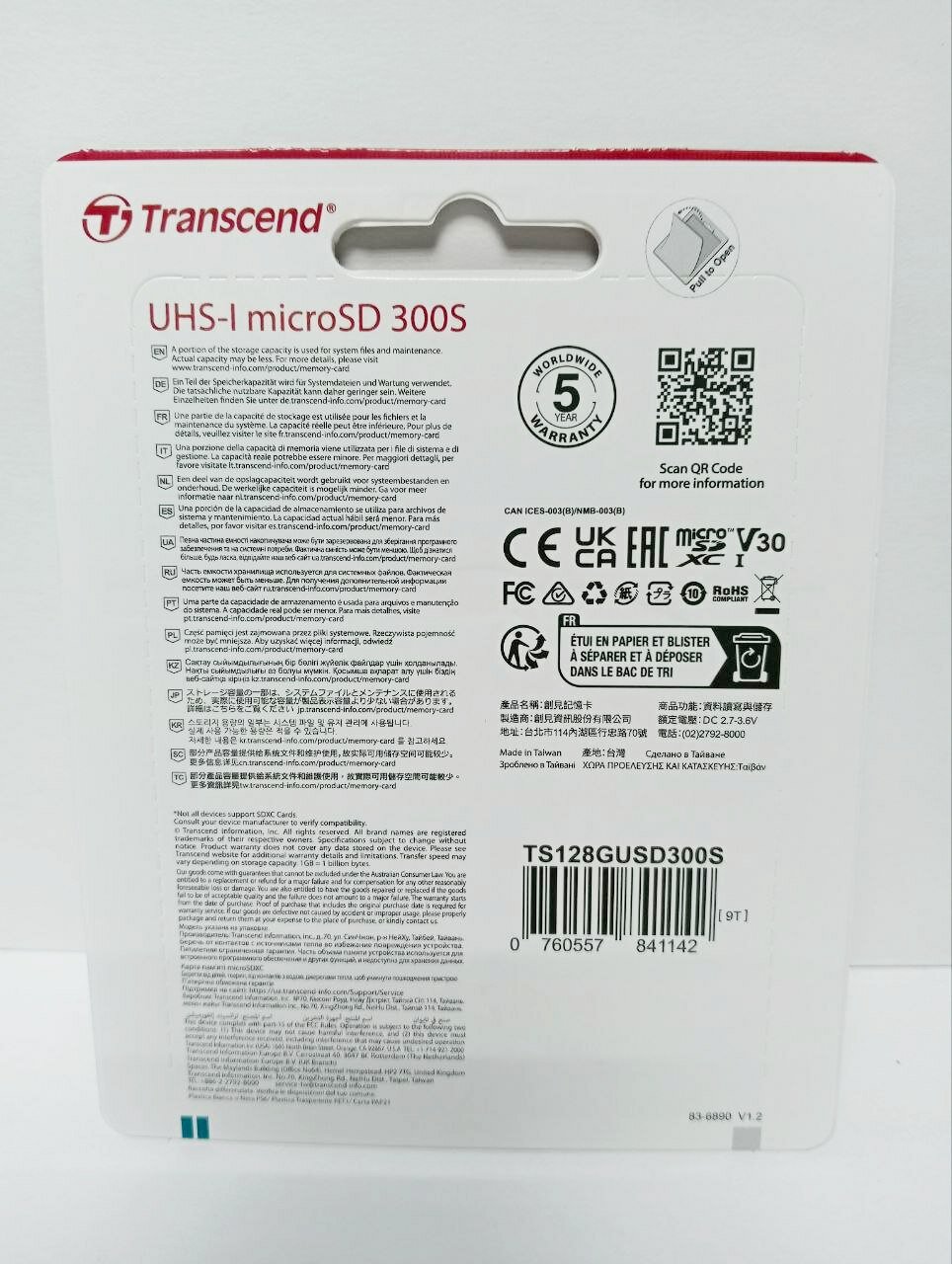 Карта памяти microSDXC Transcend 300S microSDXC 128Gb UHS-I A1, 1шт. (TS128GUSD300S)