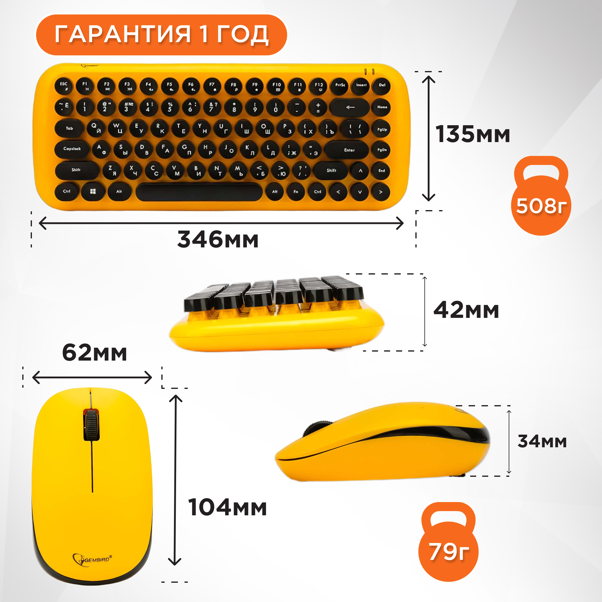 Комплект клавиатура и мышь GEMBIRD KBS-9000 жёлтый
